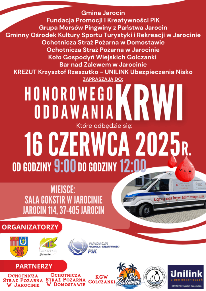 Podziel się tym, co najcenniejsze – oddaj krew! Już 16 czerwca w godzinach 9:00–12:00 zapraszamy wszystkich ludzi dobrej woli do